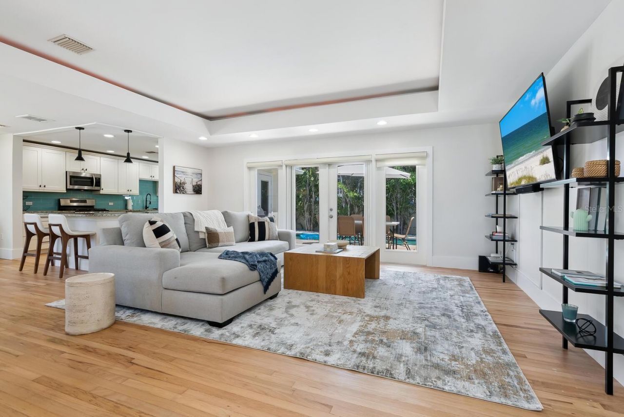 Experience the best of West of Trail living in this impeccably maintained, renovated pool home situated on an oversized lot. The interior features refinished hardwood floors, double-paned windows, and an updated kitchen equipped with custom cabinetry, granite countertops, and stainless-steel appliances. The inviting main living area is highlighted by a trey ceiling and a gas fireplace, with French doors leading to a private outdoor area, perfect for the Florida lifestyle. This exterior retreat includes a saltwater pool and a professionally landscaped, fully fenced yard with irrigation supported by an irrigation well. Significant improvements offer peace of mind and long-term value, including a new standing seam metal roof (2025), a full A/C system (2022), a garage mini-split (2024), and completely replumbed with PVC. The air-conditioned two-car garage features new epoxy flooring and is currently utilized as a versatile game room. Ideally located in the sought-after Southside Elementary district, this residence provides quick access to Southside Village, downtown Sarasota, and the renowned beaches of Siesta and Lido Key. The property has a great rental history.